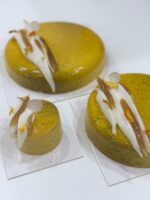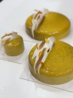 Composition : Biscuit amande sans gluten, crémeux citron, marmelade de cédrat et citron noir d’Iran, crème légère citron