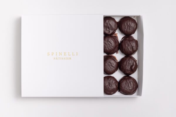 Guimauve à la vanille, fourré au caramel au beurre salée et enrobé de chocolat noir 70%.