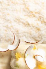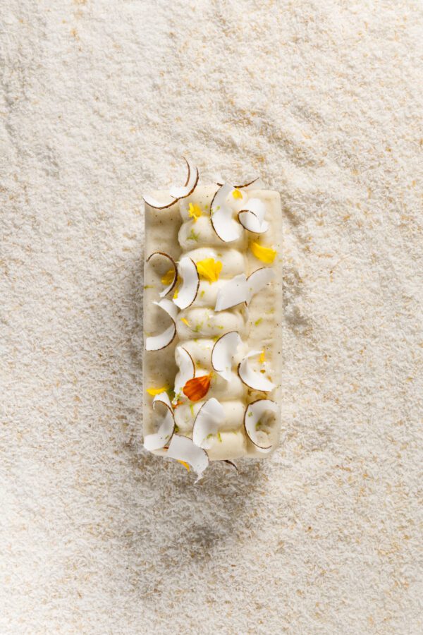 Une bûche rafraichissante et légère aux saveurs exotique de noix de coco, et fruit tropical. SANS GLUTEN ET SANS LACTOSE