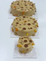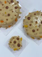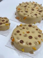 Composition : Biscuit amande sans gluten, crémeux cacahuète, caramel beurre salé, cacahuète grillé et crème légère beurre de cacahuète.