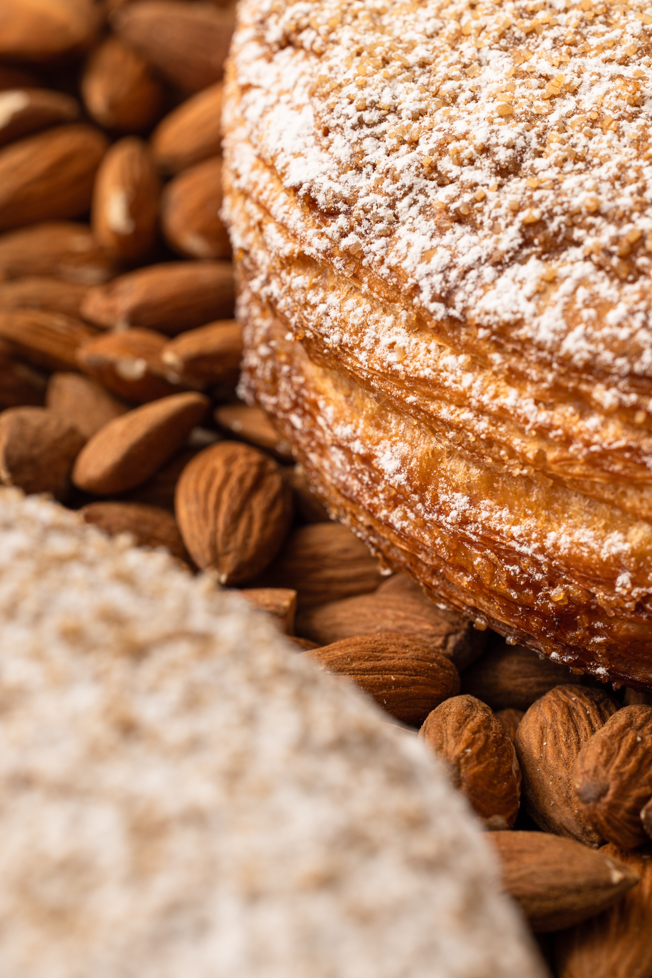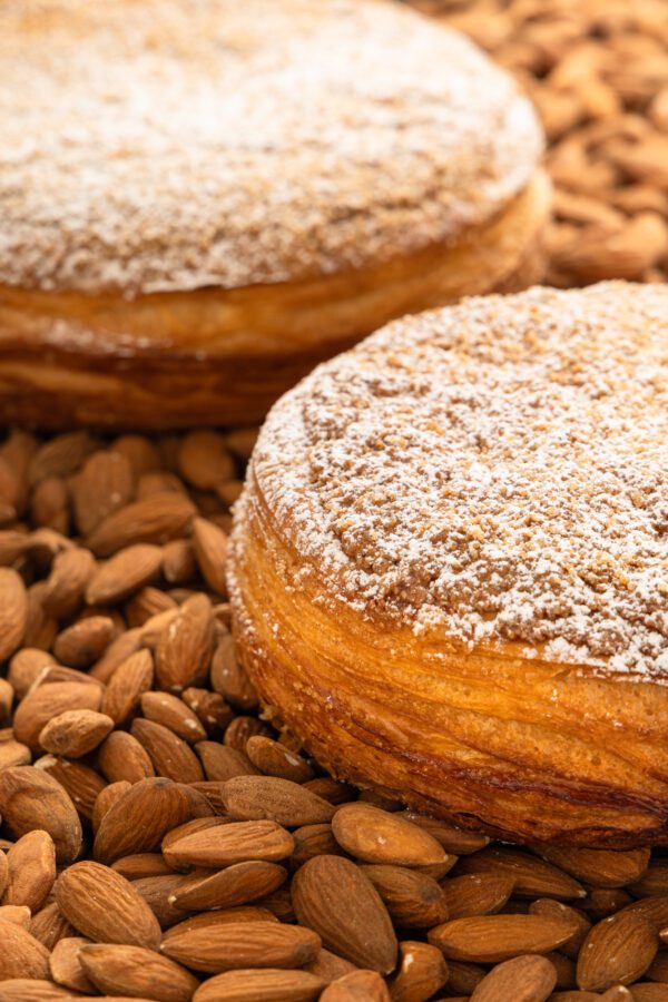 Composition : Pâte à croissant, frangipane aux amandes, craqueline (légère couche similaire à une macaronade recouvrant la galette)