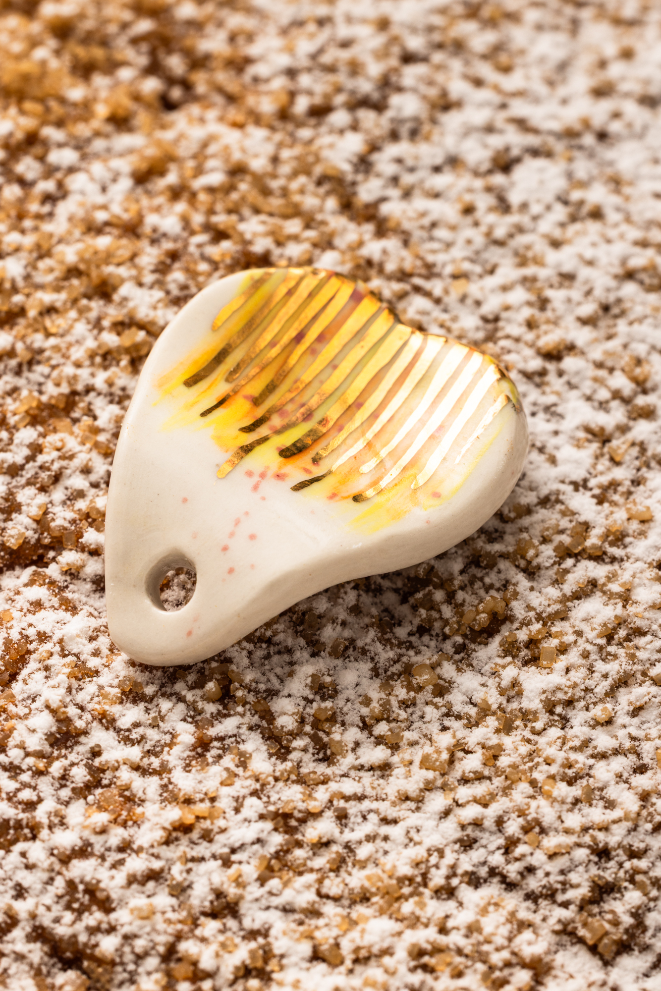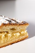 Une galette des rois généreuse avec une pâte à croissant, une frangipane traditionnelle avec des éclats d’amande gourmand et bien sur la star… Une fève en porcelaine réalisée à la main par une artiste céramiste du Vexin Isabelle !